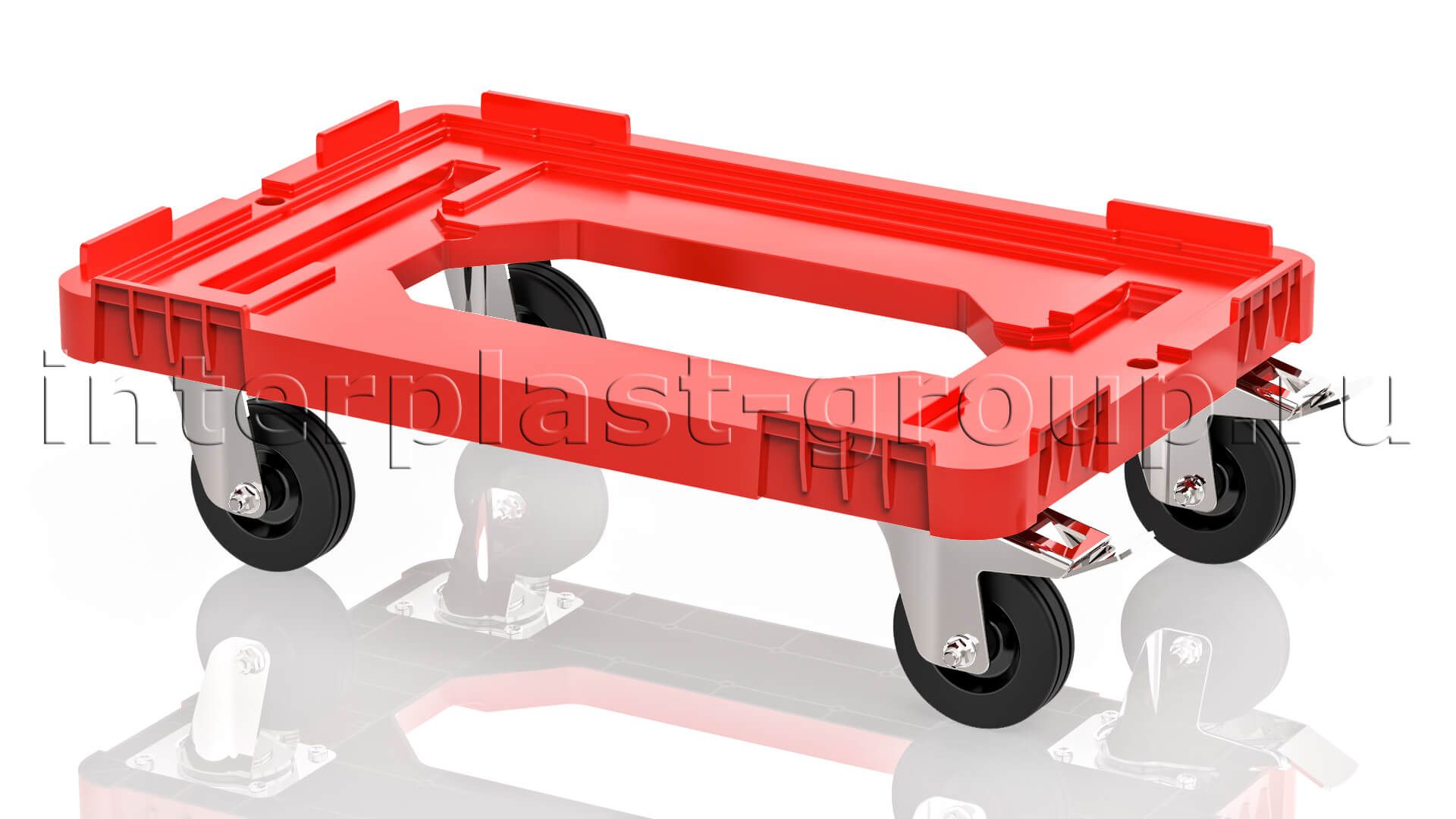 Тележка пластиковая с отверстием 2 колеса с тормозом красная в Евпатории