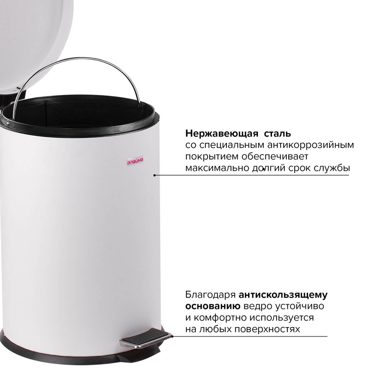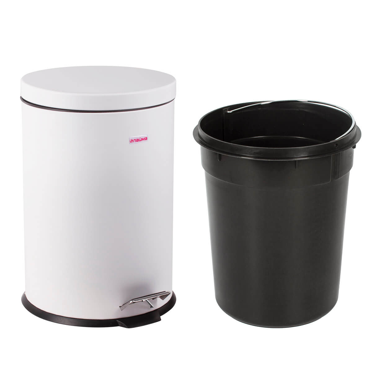 Ведро-контейнер для мусора (урна) с педалью LAIMA Classic, 12 л, белое, глянцевое, металл, со съемным внутренним ведром