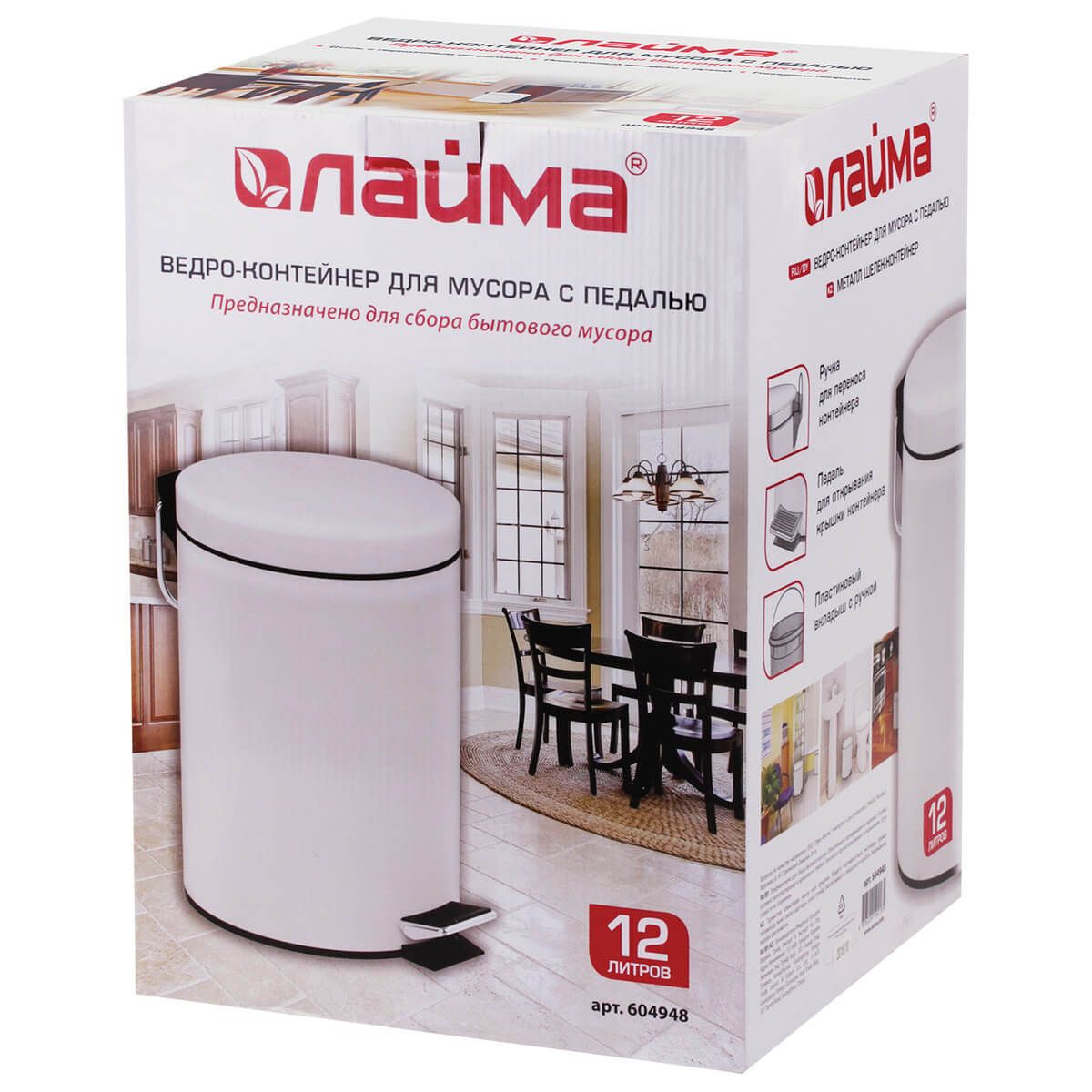 Благодаря своему стандартному объему в 12 литров, она идеально подходит для средней проходимости. А вот педаль для открывания, крышка, плотно прилегающая к корпусу - всё это предотвращает распространение неприятных запахов. Внутреннее съемное ведро из пластика снабжено удобной рукояткой для легкого извлечения.