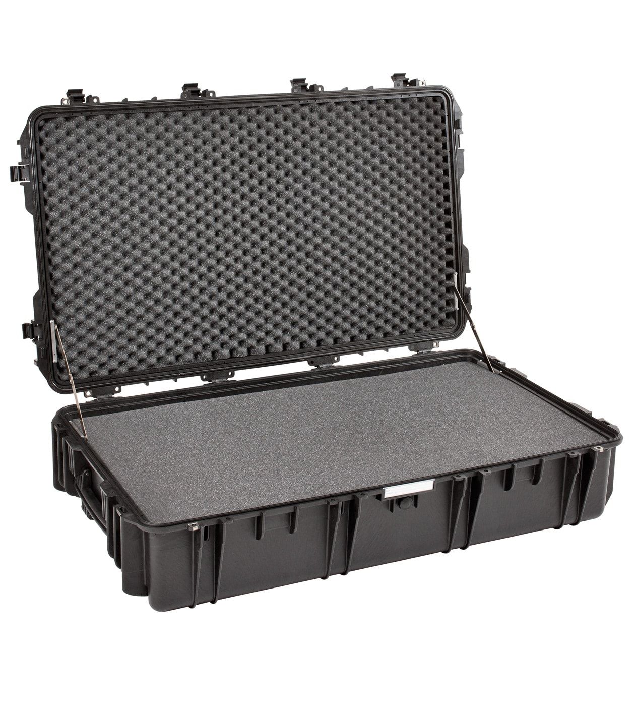 Многоцелевые транспортные кейсы для нескольких видов оружия. Металлические защелки-бабочки. Доступен в трех стандартных внутренних конфигурациях: пустой, с поропластом и с предварительно сформированный поропластом. Самосмазывающиеся свободно вращающиеся колеса.